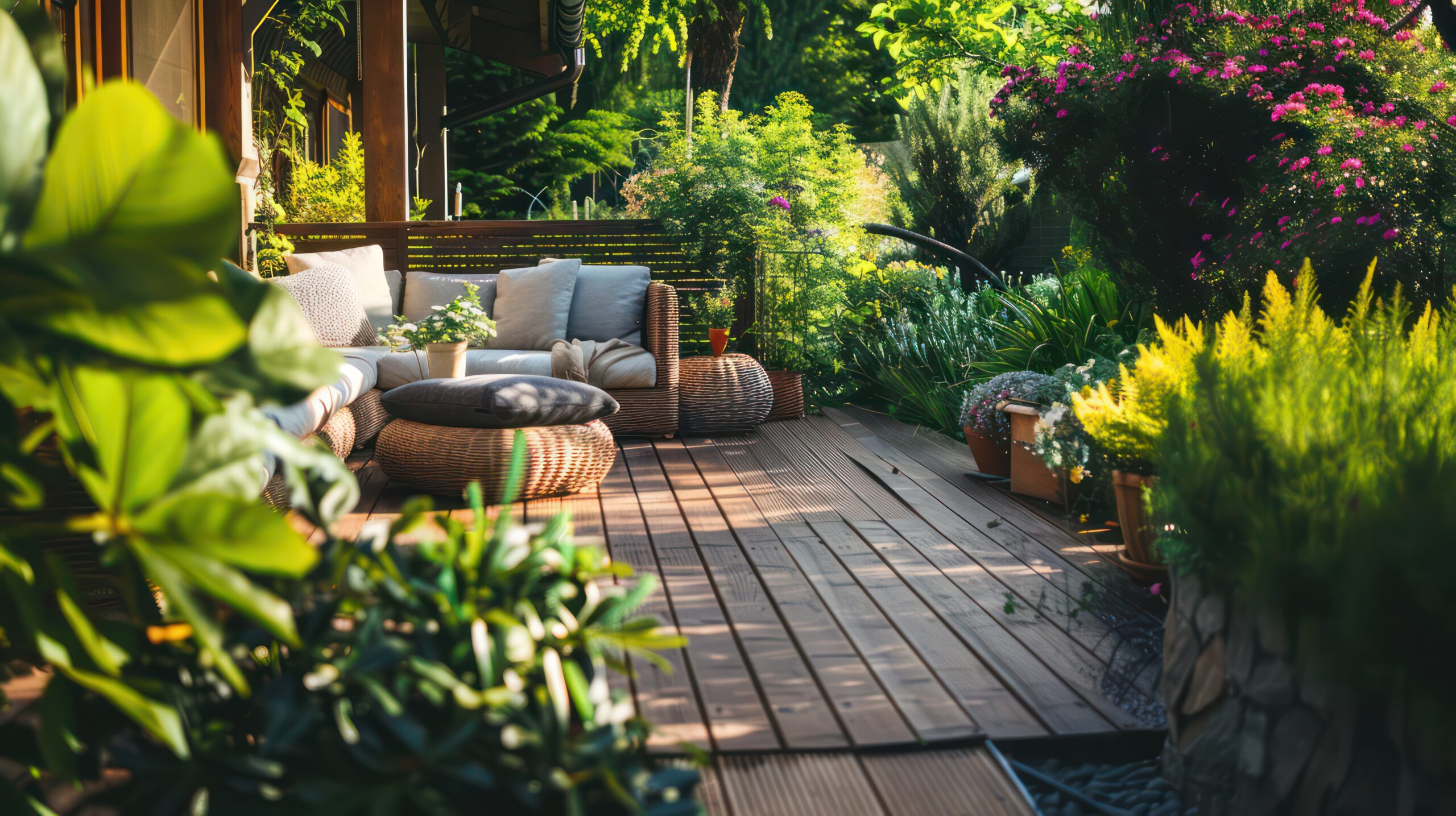You can give the canopy-like trees a vibrant and magical feel by adding different styles, shapes, and colors of stones, decorative rocks, and beach pebbles, such as green, gold, or white pebbles. Keep in mind that making the area around your deck more secluded doesn’t mean you’ll have a dark and gloomy space.